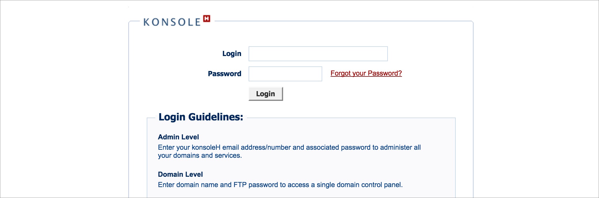- Login – the domain name e.g. example.com (without the www)